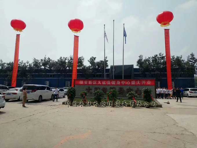 雄安新區(Xiongan New Area)位于中國河北省保定市境內,地處北京、天津、保定腹地,規劃范圍涵蓋河北省雄縣、容城、安新等3個小縣及周邊部分區域,我公司于2018年4月承建的大鯊魚健身會所歷時3個月投入使用,會所位于安新縣城內, 占地面積13000平方米?傮w投資1個億,會所配備國際一線品牌健身器材,并由專業的私人教練隊伍全程跟蹤指導,室內配備恒溫游泳館,全部由鄭州泳潔水處理設備有限公司承建。其中過濾設備采用中南海專用曝氣呼吸精濾系統,為泳潔專利技術,水質活化、鮮化,流水永遠不腐。由于水的潔凈度很高,有一種天然的藍色,自然透明。加熱系統采用英國進口品牌,水溫水質均遠遠高于國標。泳潔泳池重力式水處理過濾器是以靠水位的高度差進行過濾,水泵揚程6-8米,原水進入設備后先水流細分進行曝氣,增加水體溶解氧含量,使水活化、鮮化,然后自上而下的過濾。濾料采用七層反復合天然礦石精制而成,在不投加任何絮凝劑、混凝劑、助凝劑情況下,可以有效截留原水中懸浮物和有害物質,濾后水質經檢測小于1NTU。在重力的作用下巧妙利用虹吸原理實現了自動反洗自動過濾的功能,真正成為了高效節能的水力自動化水處理過濾設備。