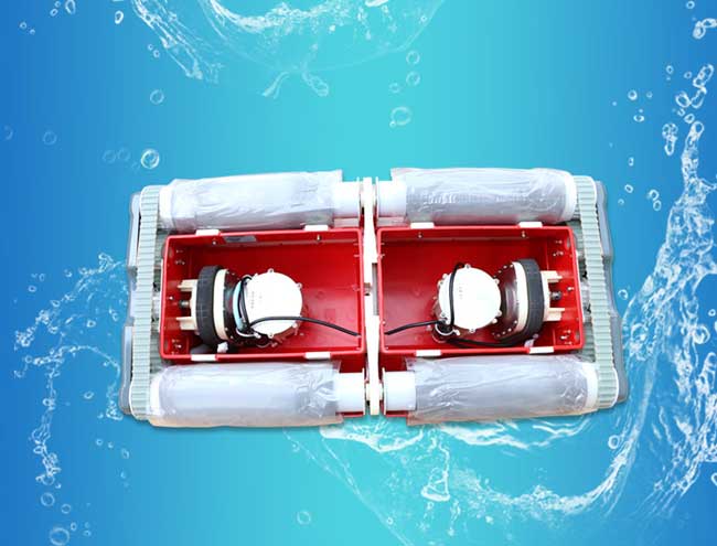 霸天虎是針對大型泳池設計的,內有陀螺儀導航,可以走直線可以90度轉彎,確定清潔軌跡可以覆蓋泳池整個泳池四個獨立馬達,兩個過濾袋,一粗一細過濾袋可以清潔池內大小垃圾。